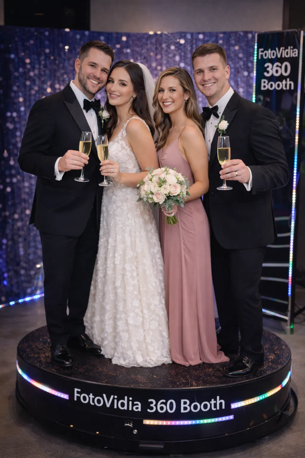 Larger Group Booth up to 10+ Guests platform captures dynamic group photos and interactions with style. Gather your guests, and enjoy the fun, laughter, and energy that make every event unforgettable.